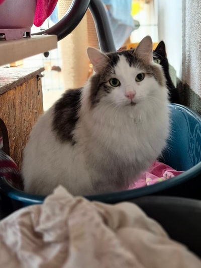 Sie wurde Ende Mai in Hülsede aufgefunden – verwahrlost und abgemagert. Was die Maine-Coon-Mix-Dame erlebt hat, wissen wir nicht. Sie taut so langsam auf, ist aber immer noch sehr schüchtern. Wir suchen Katzenfreunde, die ihr die nötige Zeit geben, um anzukommen und aufzutauen. Eine oder mehrere bereits vorhandene Katzen im Haushalt würden ihr sicherlich Rückhalt geben. Wir denken, dass Hülsi, wenn sie erst einmal Vertrauen zu ihren Menschen gefasst hat, eine treue und liebenswerte Gefährtin sein kann.