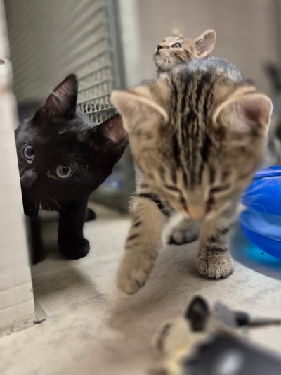 Diese fröhliche Rasselbande tollt derzeit durchs Katzenhaus. Die vier Kater sind Mitte August geboren und dürfen nun ausziehen. Sie sind Menschen gegenüber zutraulich, aufgeschlossen und verspielt. Bei Auszug sind sie geimpft und gechipt.